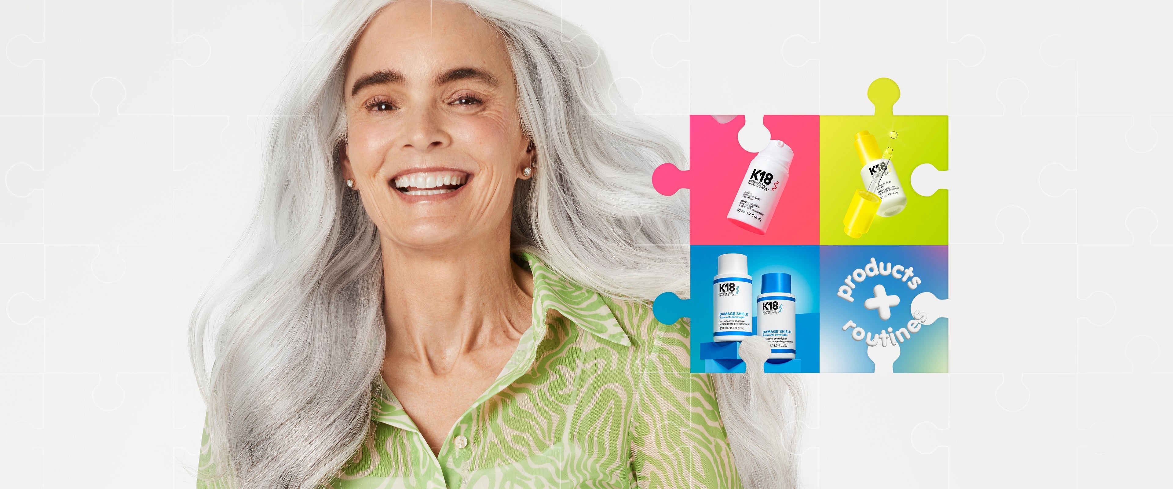 Our patented K18PEPTIDE™penetrates deep into hair’s innermost layers to repair broken polypeptide chains, working to fill in any gaps by reconnecting them immediately and over time. Hair accepts this biomimetic repair as natural, which allows it to more effectively strengthen, smooth, and renew on the deepest possible level.