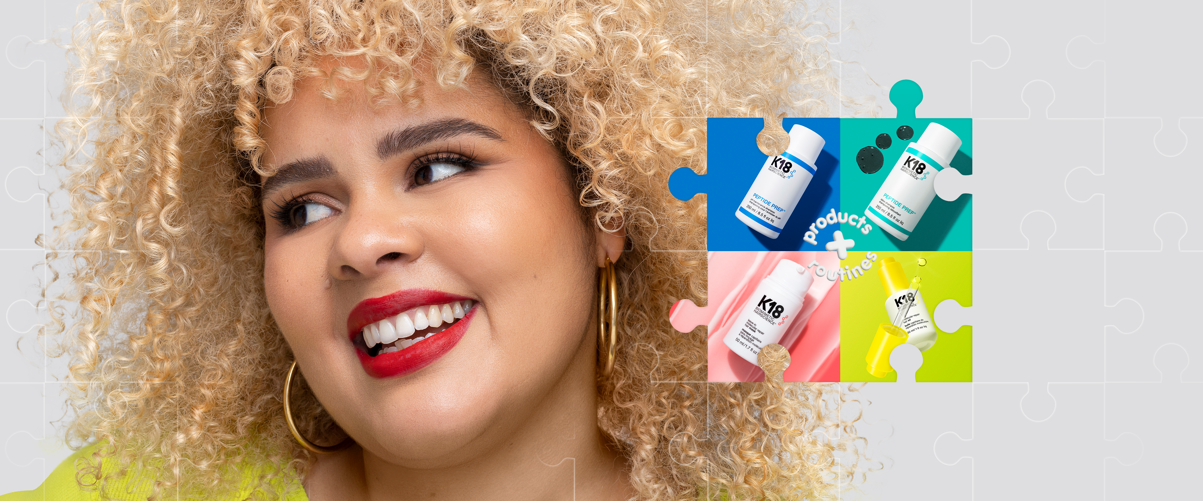 K18 DAMAGE SHIELD pH protective shampoo makes an ideal everyday cleanse to remove dirt and oils. If hair’s feeling heavy and sticky, go for K18 PEPTIDE PREP™ detox shampoo, which was engineered to remove 99% product buildup*, 95% sebum*, and 76% copper* with every wash.